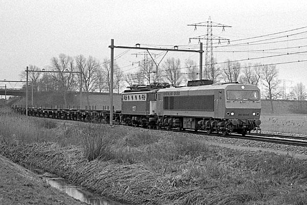 1. Loenersloot, 8 februari 1980. Ook met dieselloc 202 003 zijn proefritten gereden in Nederland. Hier is zij met e-loc NS 1127 op weg van Utrecht naar Amsterdam. Op basis van deze loc wilde de NS een serie 6000 laten ontwerpen, maar dit ging vanwege de kosten niet door. In plaats hiervan werd een standaardlocomotief besteld, die bij NS als serie 6400 in dienst kwam.