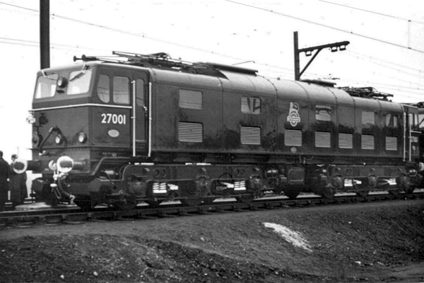 10. E-loc BR 27001 "Ariadne" in depot Wath Loco. Van deze zesassige locomotieven (class 77) werden er in 1954 zeven gebouwd voor de dienst op de lijn Manchester-Sheffield/Wath. Het plan uit 1948 was om 27 locs te bouwen, maar inmiddels was besloten om geen spoorlijnen meer te elektrificeren met 1500 volt gelijkstroom. In 1968 werden de locs terzijde gesteld. In 1969 nam de NS ze over. Zes locs werden in dienst gesteld als serie 1500. De loc op deze foto werd NS 1505. Loc 27005 "Minerva" werd gebruikt als plukloc.