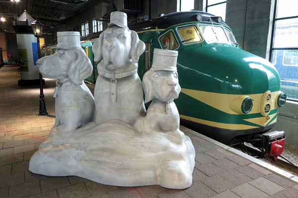 2. + 3. Spoorwegmuseum Utrecht, 13 juli 2016. Hondekop 386 vergezeld van drie hondenkoppen. Hoe leuk is dat? (Het gedrocht is gemaakt door Leisure Expert Group ter gelegenheid van de verbouwing van de museumhal in 2016.)