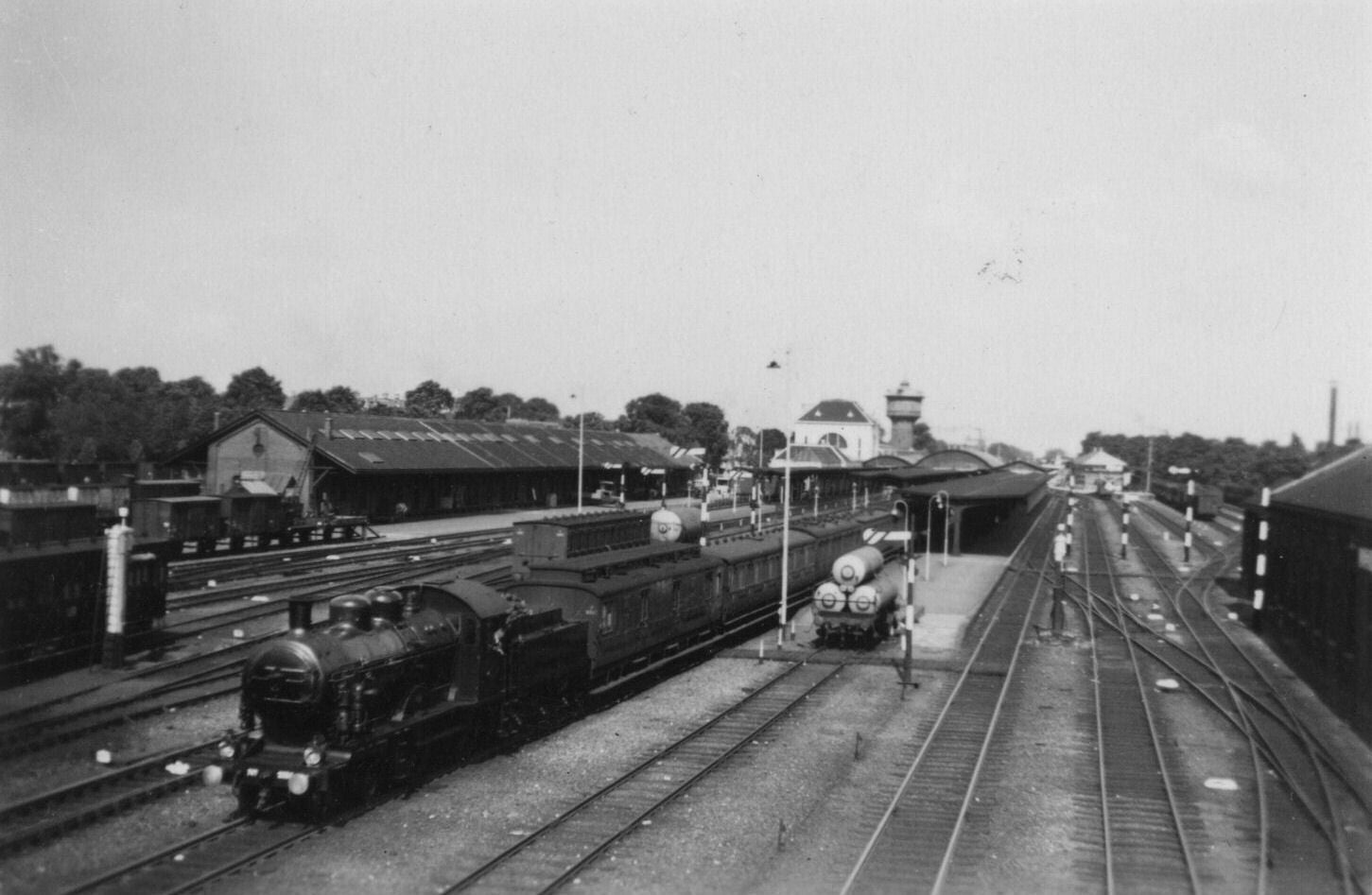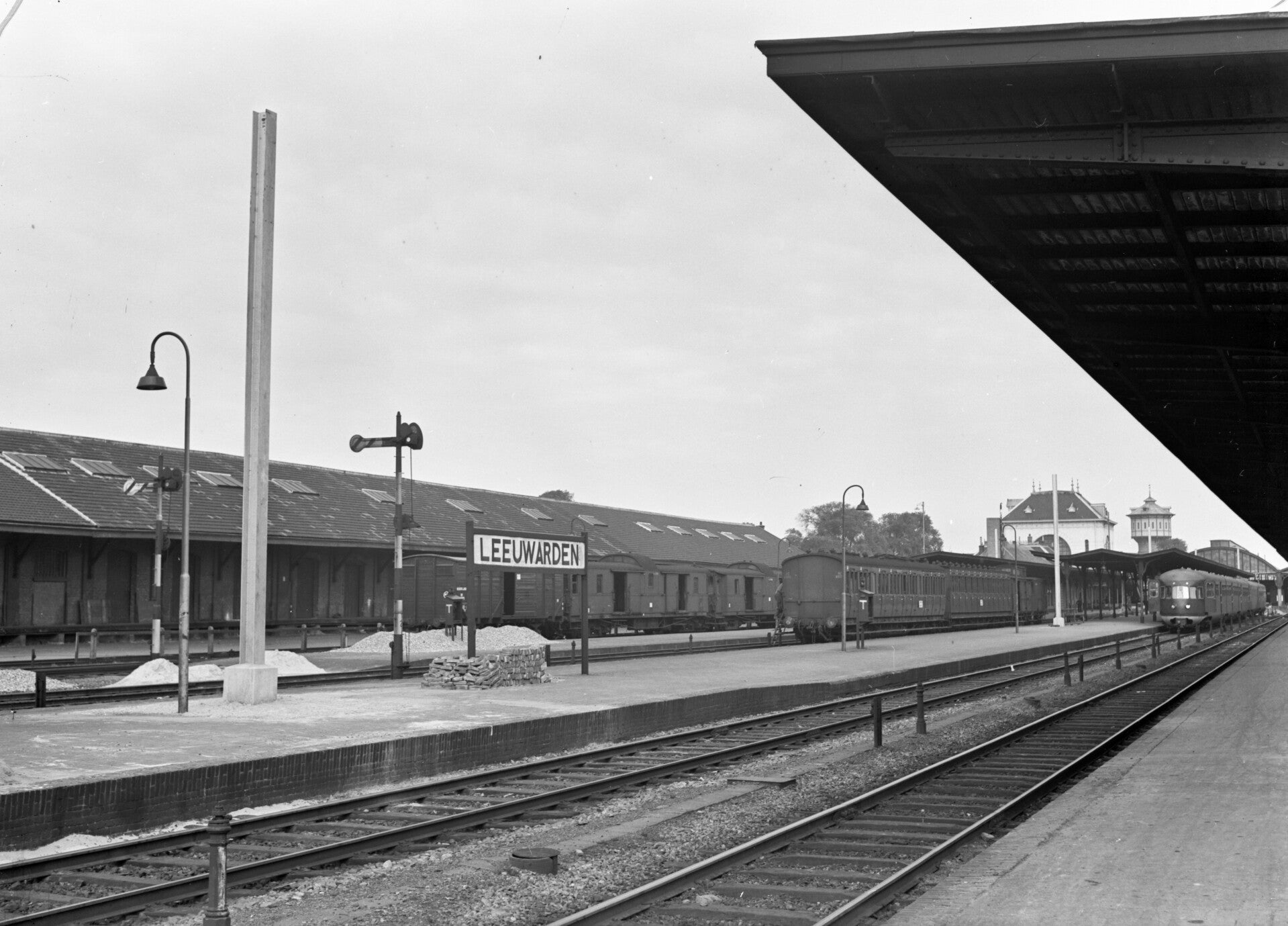 4. Catalogusnummer: 161781. Het emplacement van het N.S.-station Leeuwarden te Leeuwarden, met een trein getrokken door een stoomlocomotief uit de serie NS 2100. Datering: 19 juli 1939. Foto: Onbekend - Het Utrechts Archief / hetutrechtsarchief.nl