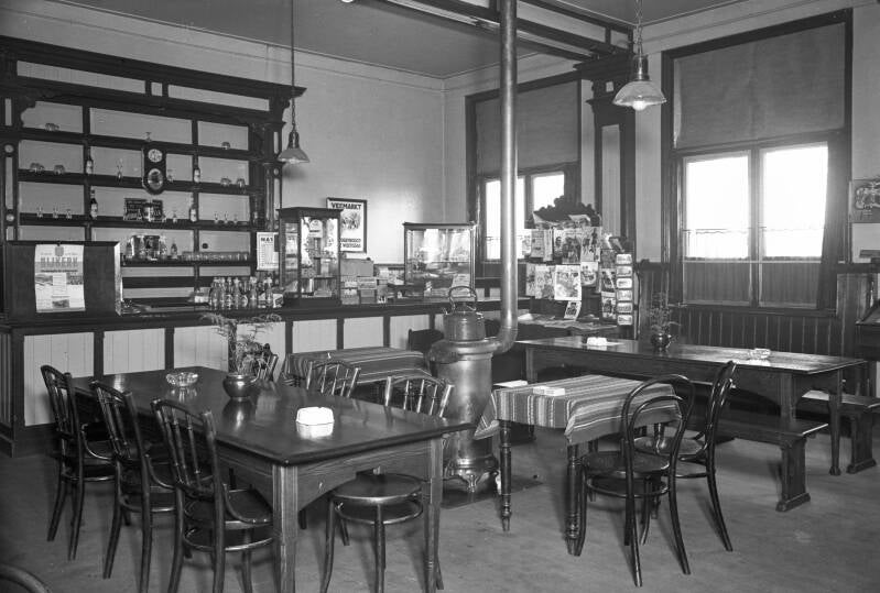6. Catalogusnummer: 166263. Interieur van het N.S.-station Nijkerk te Nijkerk: wachtkamer 3e klasse. Datering: 27 maart 1941.