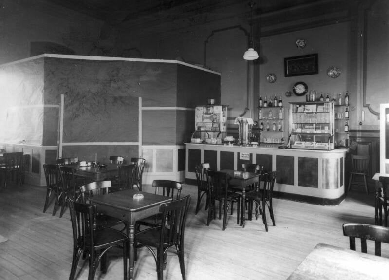 9. Catalogusnummer: 166090. Interieur van het N.S.-station Tiel te Tiel: wachtkamer 2e klasse. Datering: 28 februari 1941.