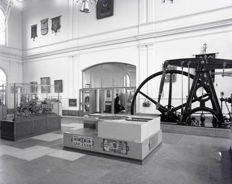 5. Catalogusnummer: 802921. Interieur van het Nederlands Spoorwegmuseum, gevestigd in het voormalige Maliebaanstation aan de Johan van Oldenbarneveltlaan te Utrecht. Datering: Tussen 01-01-1973 en 31-12-1973.