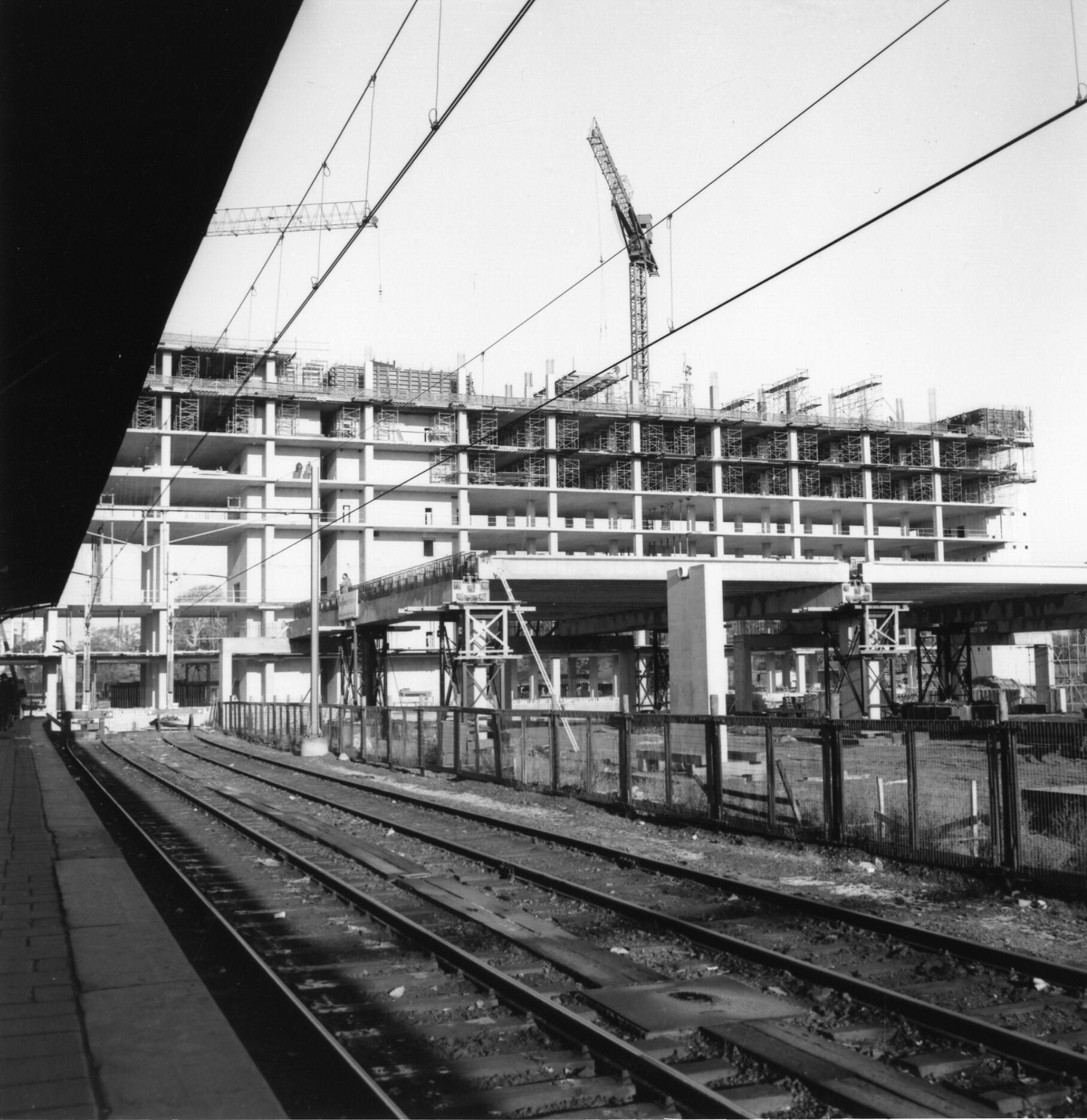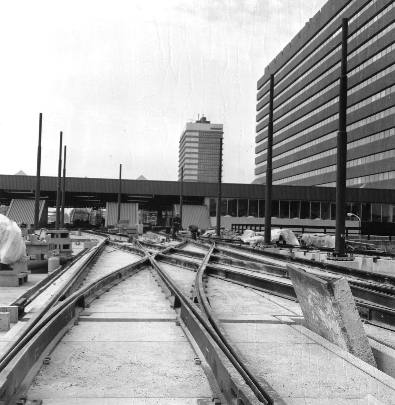 12. Catalogusnummer: 166220. Het in aanbouw zijnde tramstation boven het N.S.-station Den Haag C.S. te Den Haag.