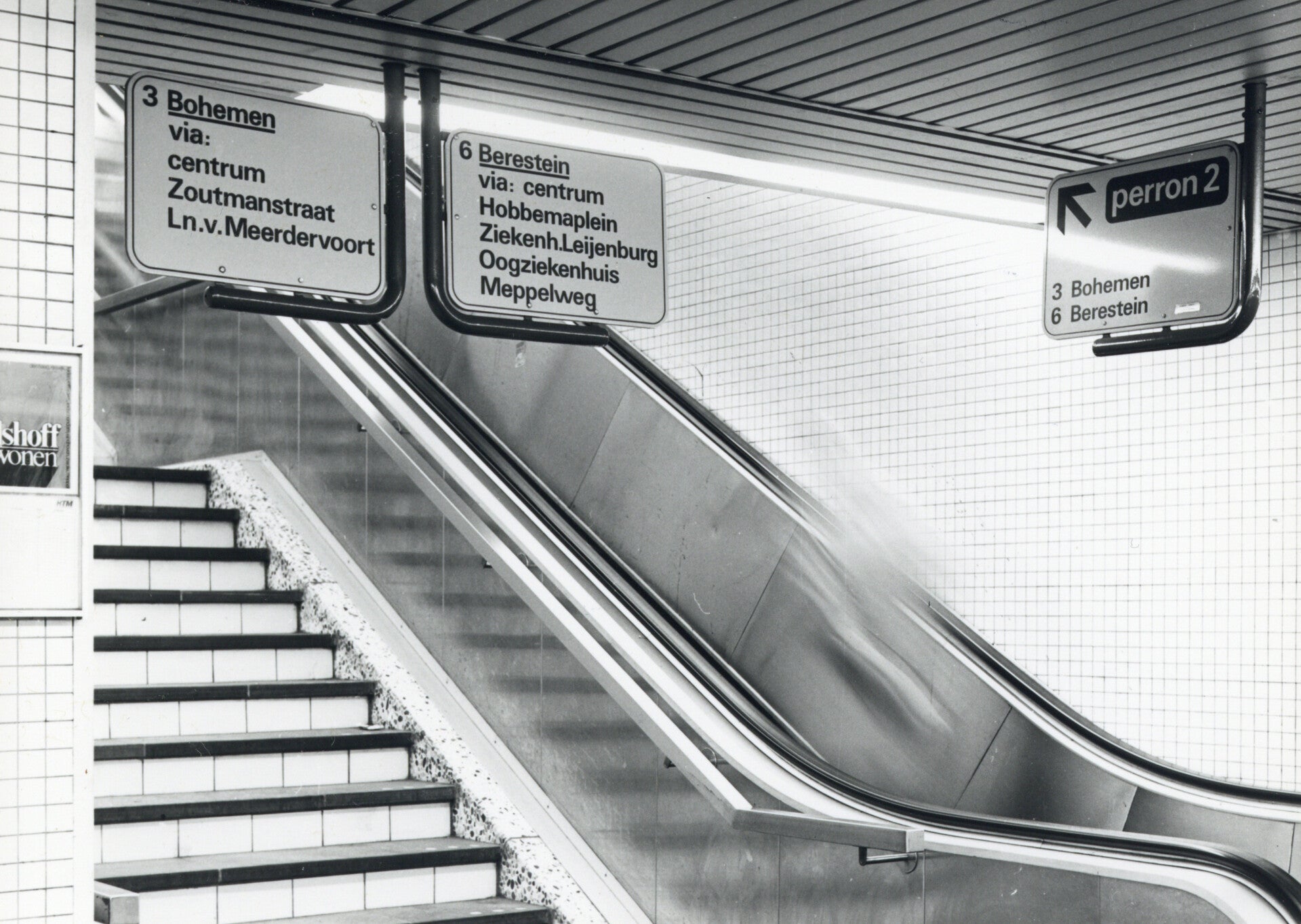 13. Catalogusnummer: 170764. Richtingwijzers (met verwijzingen naar de trams) in de huisstijl van N.S. op N.S.-station Den Haag C.S.