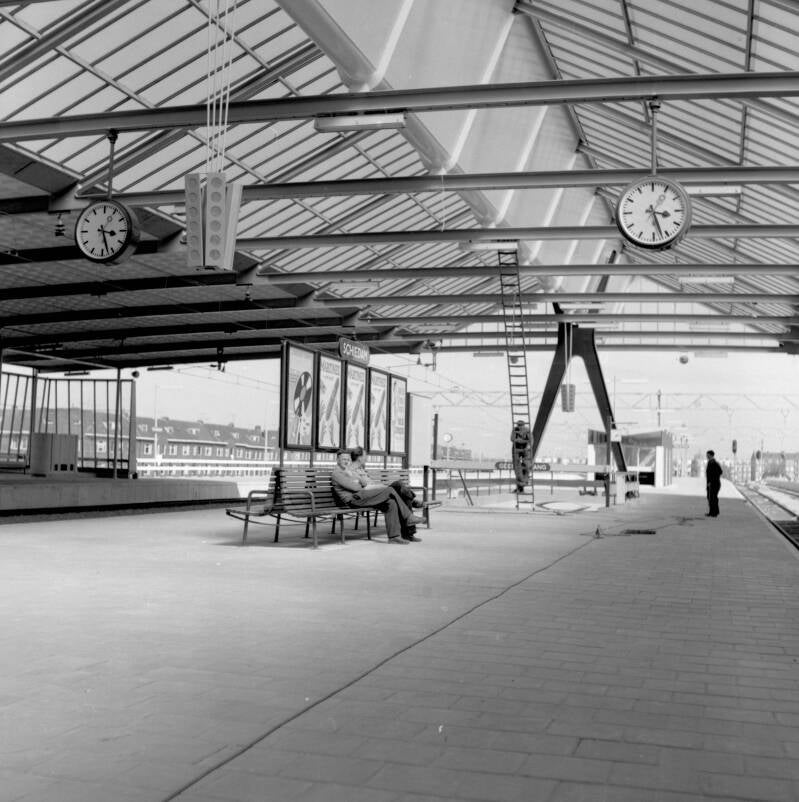 5. De perrons en de perronkap van het NS-station Schiedam te Schiedam. Datering: 28 september 1959.