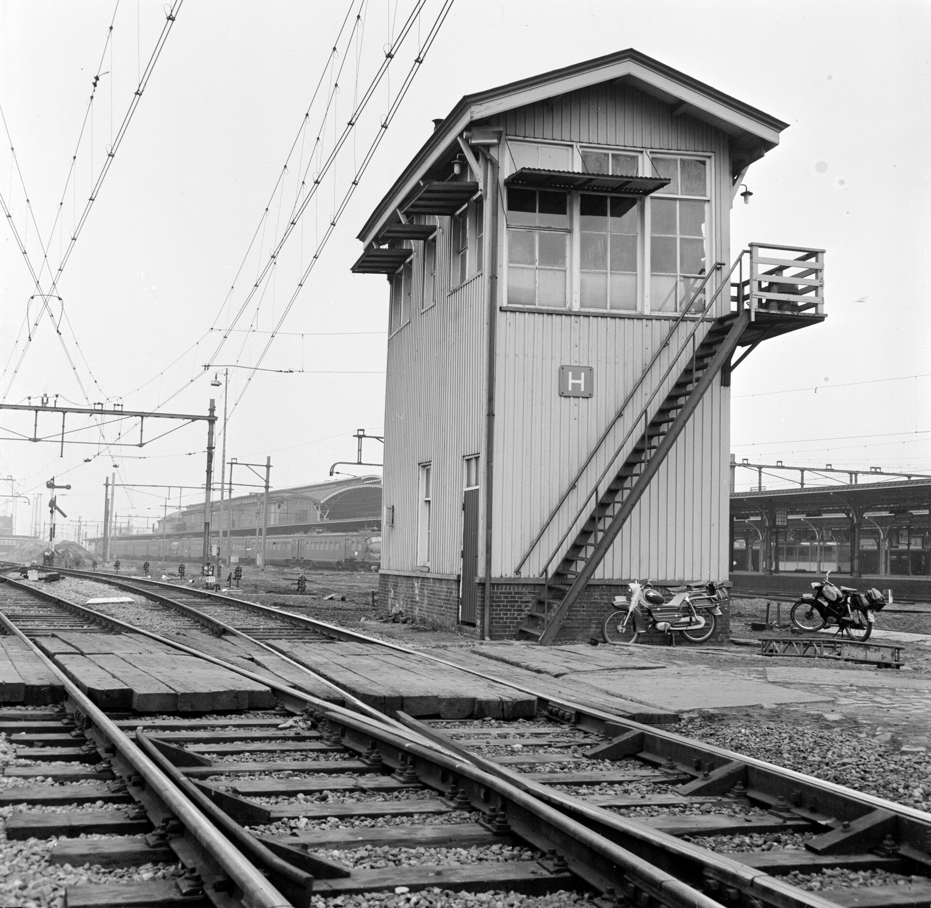 3. Catalogusnummer: 154741. Het oude seinhuis (Post H) bij het N.S.-station Utrecht C.S. Datering: 25 juni 1965.