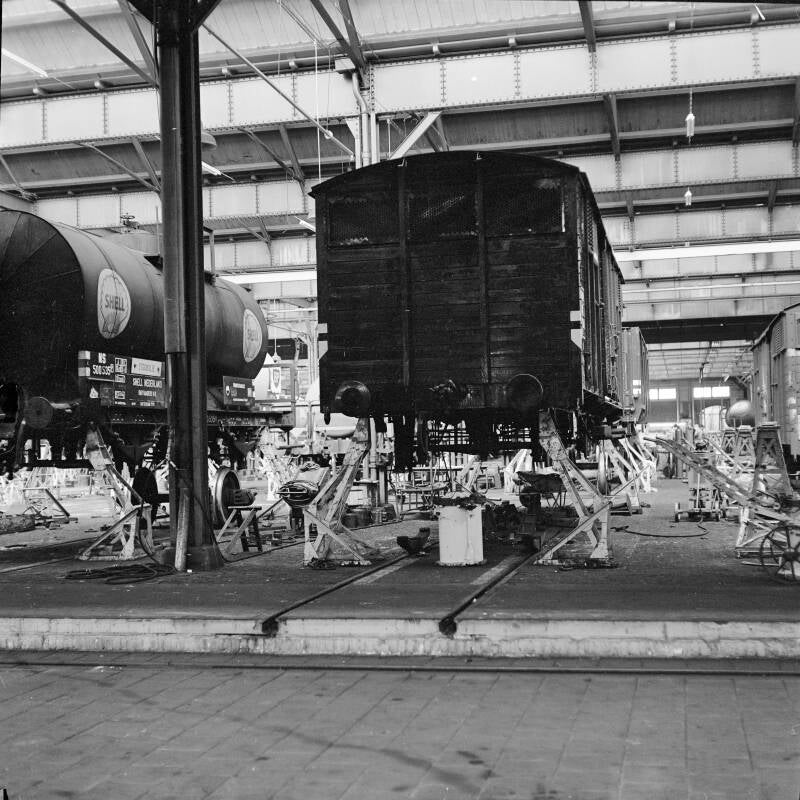 4. Catalogusnummer: 839495. Interieur van de hoofdwerkplaats van de N.S. te Haarlem. Datering: 18 juni 1958.