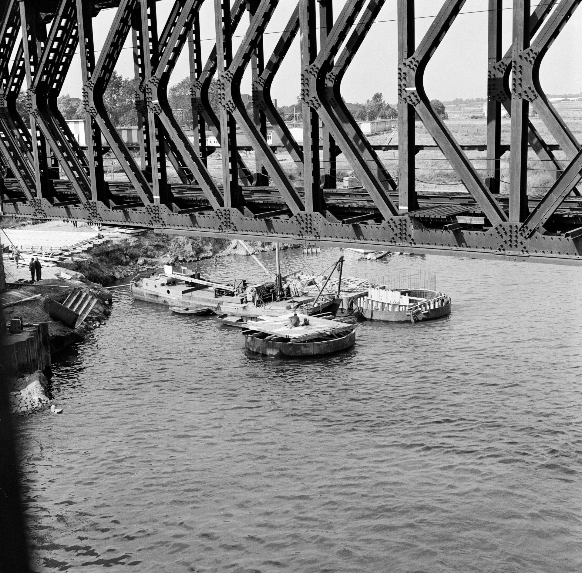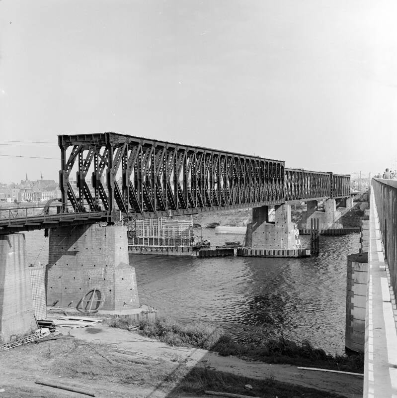 Opmerking: Afbeelding behoort tot de Collectie De Pater. Literatuur: "Bruggen rollen - Zaltbommel en Dordrecht", in: Nieuw Spoor, september 1950, blz. 263-265 (bib. HUA NST 9 jrg. 1950). Licentiestatus: CC0 1.0 Publiek Domein Verklaring