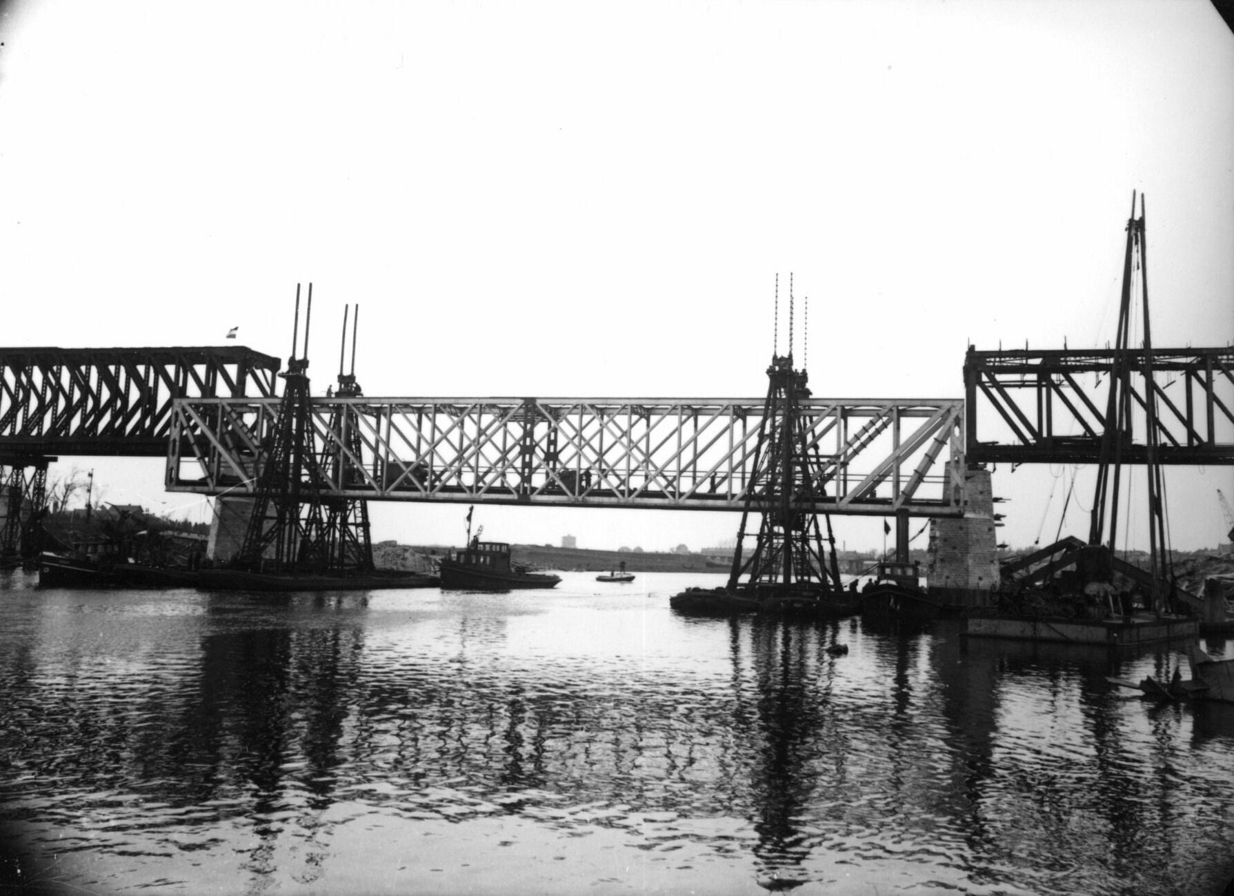 18. Catalogusnummer: 152715. De werkzaamheden ten behoeve van het herstel van oorlogsschade aan de spoorbrug over de Maas te Venlo. Datering: 16 januari 1946. Foto: Nederlandse Spoorwegen - Het Utrechts Archief / hetutrechtsarchief.nl